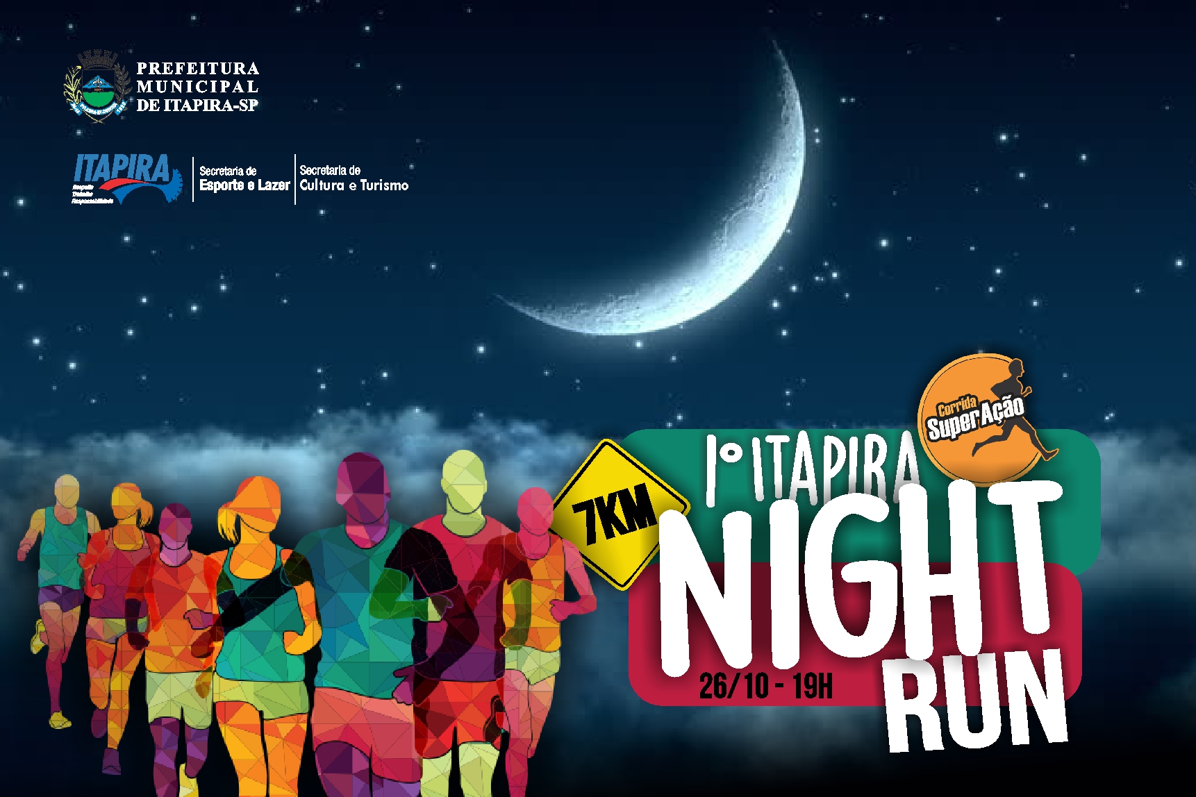 VEM AI O 1º ITAPIRA NIGHT RUN, UM EVENTO EM PARCERIA COM A PREFEITURA MUNICIPAL, DEP DE ESPORTES E CULTURA